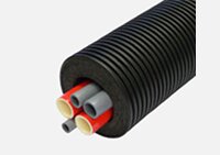 Полибутеновые трубы заключены в высокоэнергоэффективную ТЕПЛОИЗОЛЯЦИЮ ИЗ ФИЗИЧЕСКИ ВСПЕНЕННОГО (ГАЗОНАПОЛНЕННОГО) ПОЛИЭТИЛЕНА THERMAFLEX, которая в свою очередь защищена от механических повреждений высокопрочным гофрированным кожухом из полиэтилена низкого давления с добавлением КАРБОНА, приваренным к тепловой изоляции.