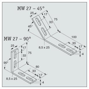 | MW 27 -90° A2 | 77625 | 90° | 27/18 + 28/30 | 25 |