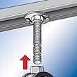 - Систему подвески можно произвольным образом выравнивать и перемещать в монтажной шине, при этом она не выпадает. Это облегчает процесс работы и одновременно экономит время. После выравнивания необходимо закрепить систему подвески с помощью гайки.